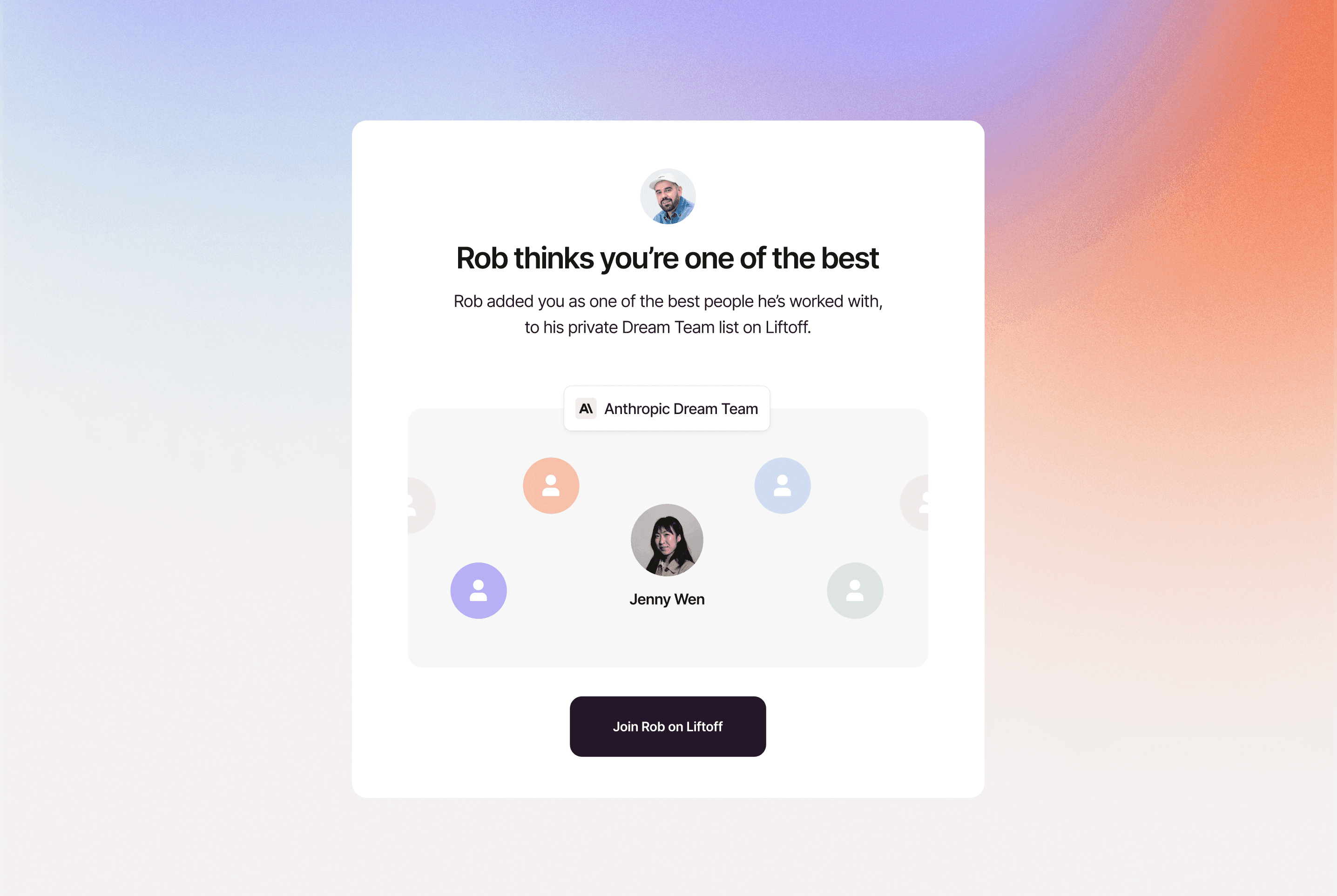 I joined the team in 2024 as one of the early team members, right around the time when we raised our seed round. We worked together on coming out of stealth, and was involved in every Liftoff touchpoint: from designing the core journey, to leading our rebrand process, to managing external designers and studios.