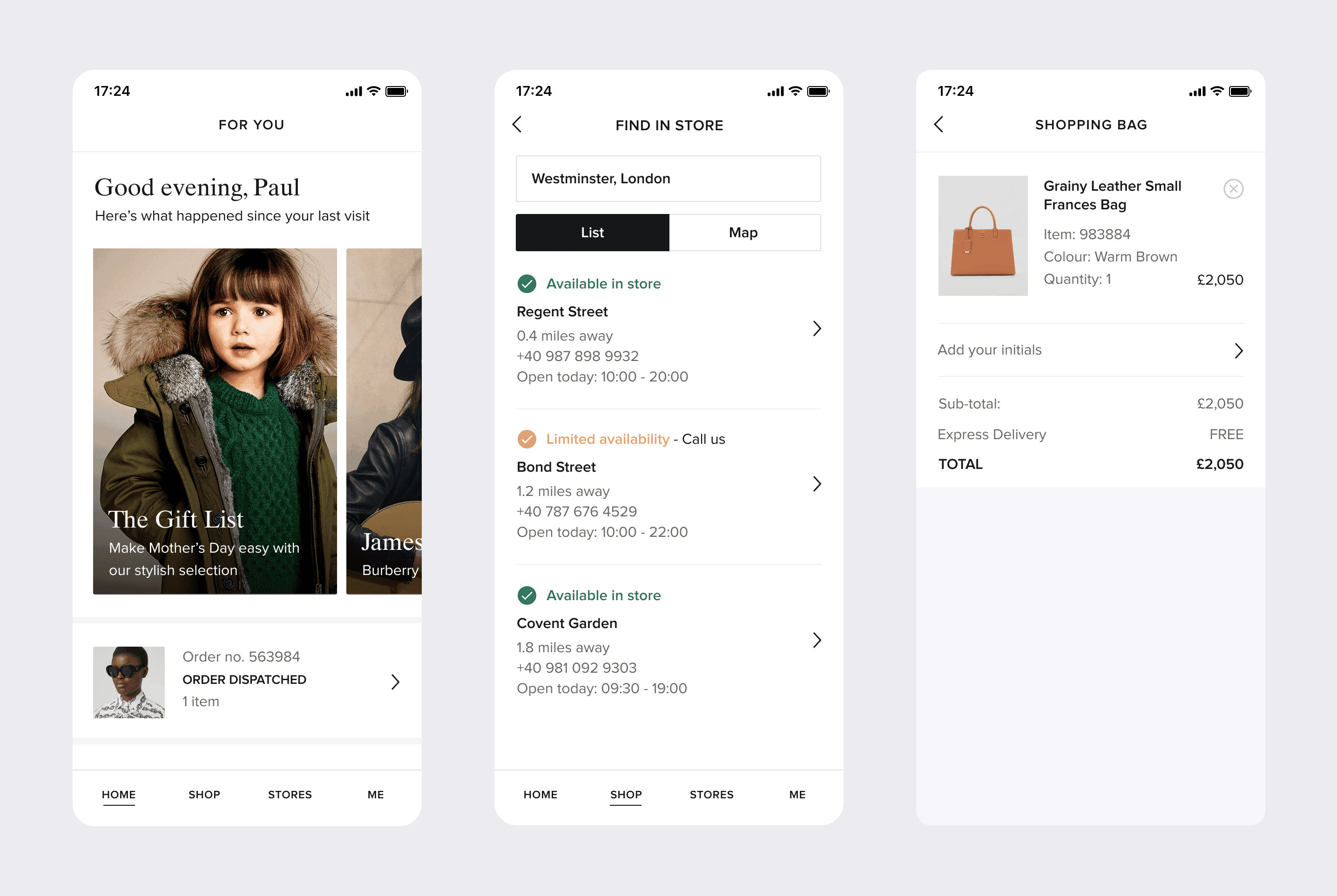 I've joined Burberry to help their team design and launch the first version of the Burberry iOS App, during a time in which the Burberry digital ecosystem was still in its early stages.