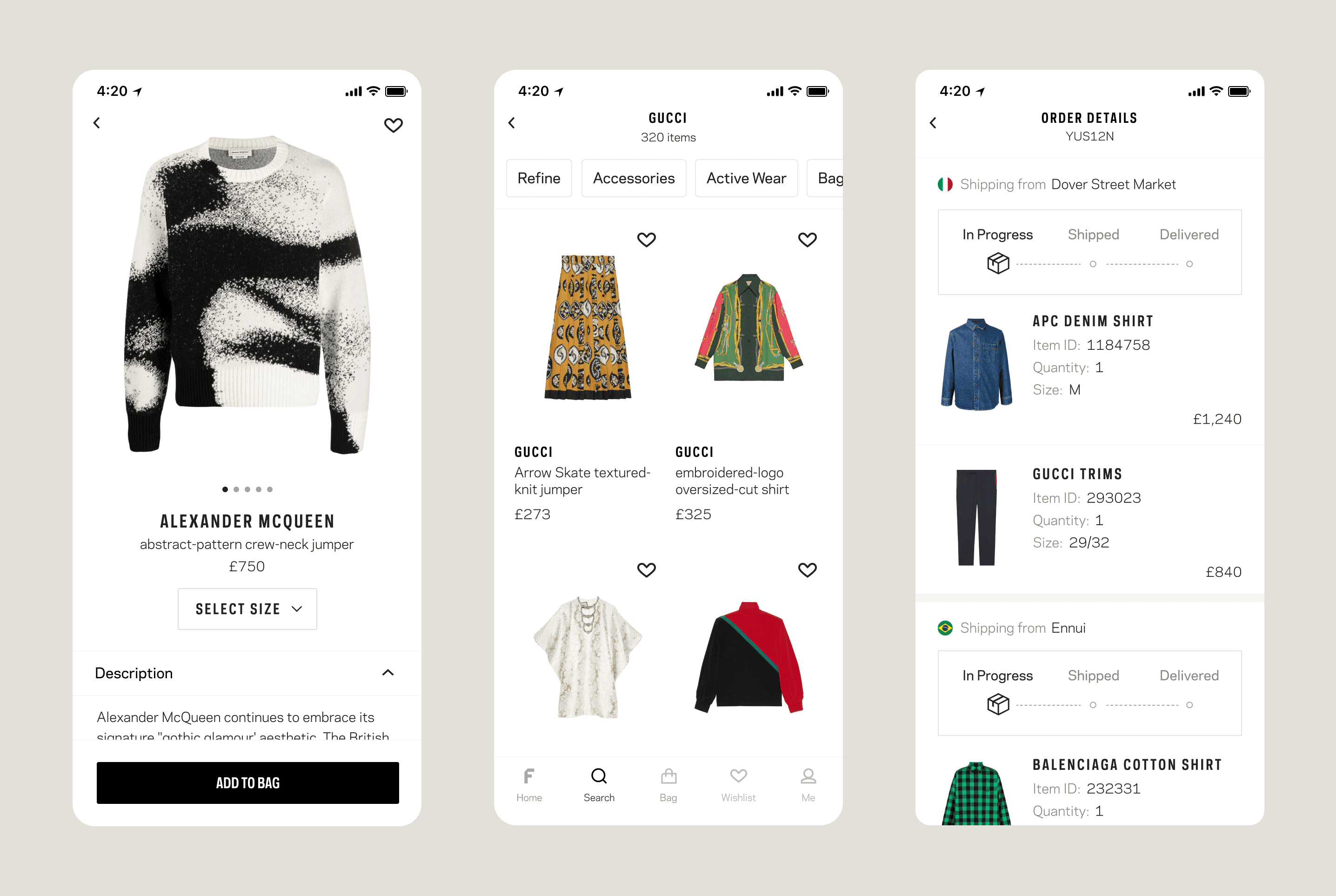 We started working together as Farfetch was preparing for their international growth. Their native apps team was still in its early stages, getting ready to work on the first iteration of their e-commerce iOS and Android apps.