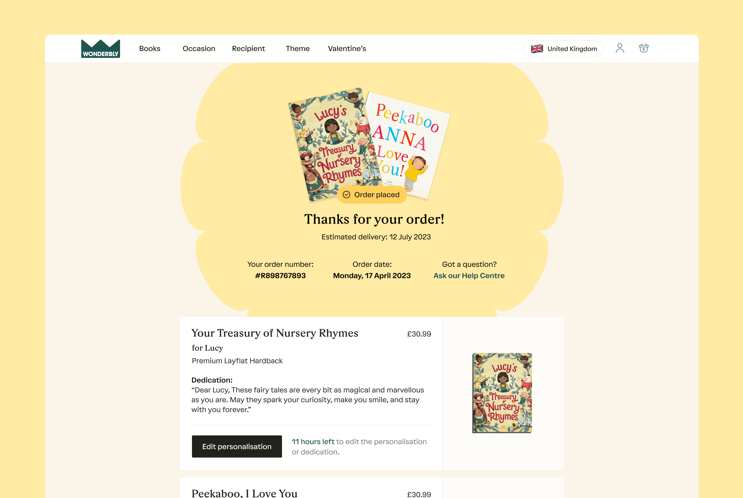Wonderbly is the world's largest personalised books publisher. I’ve joined their team as a Product Design Director to help improve the order repeat rate.