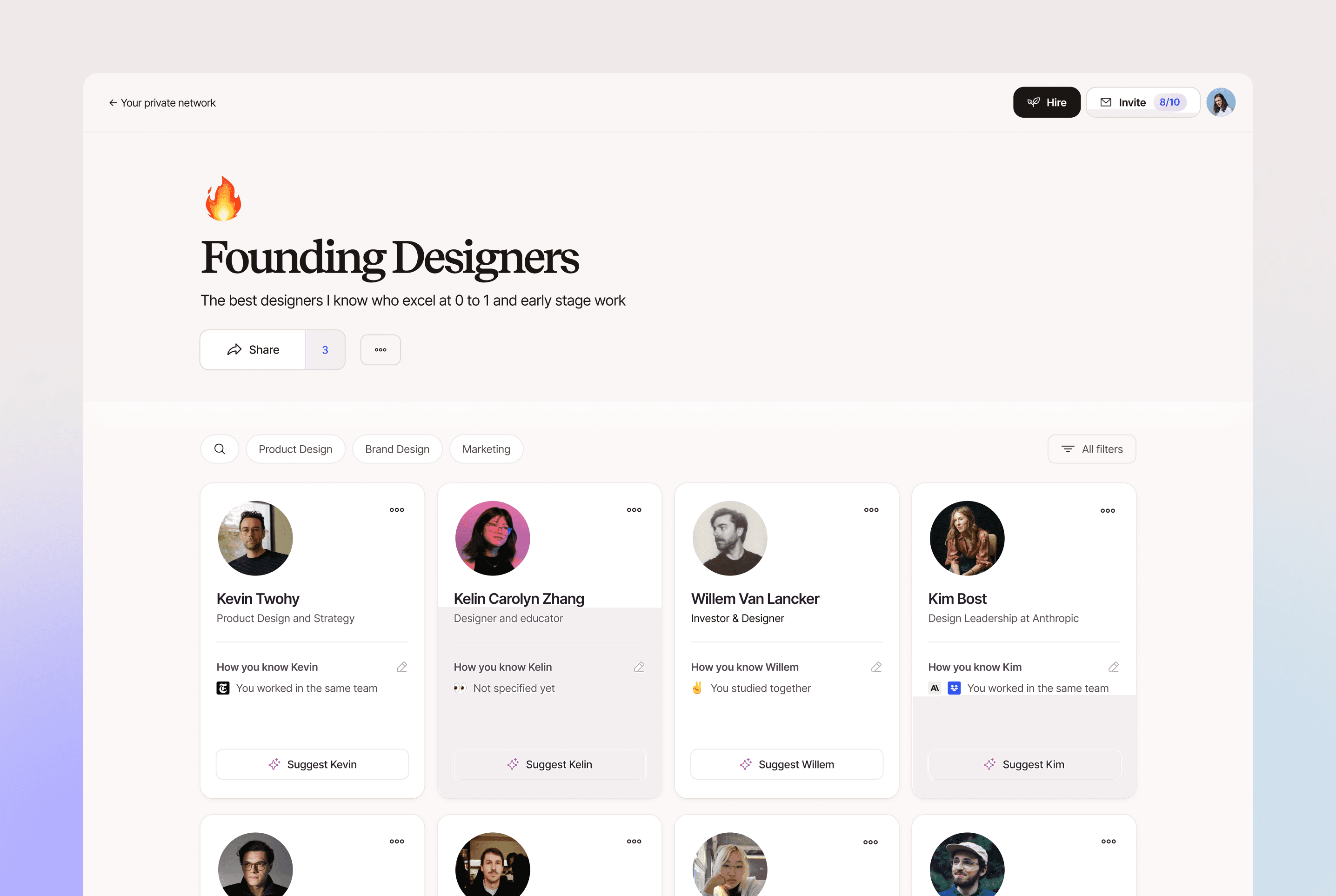 As a designer, I've helped startups figure out what they should be building and transform their vision into real products that raised millions in funding. As a leader and advisor, I've helped companies build design cultures that attract exceptional designers, and created the right environment for them to do the best work of their career.
