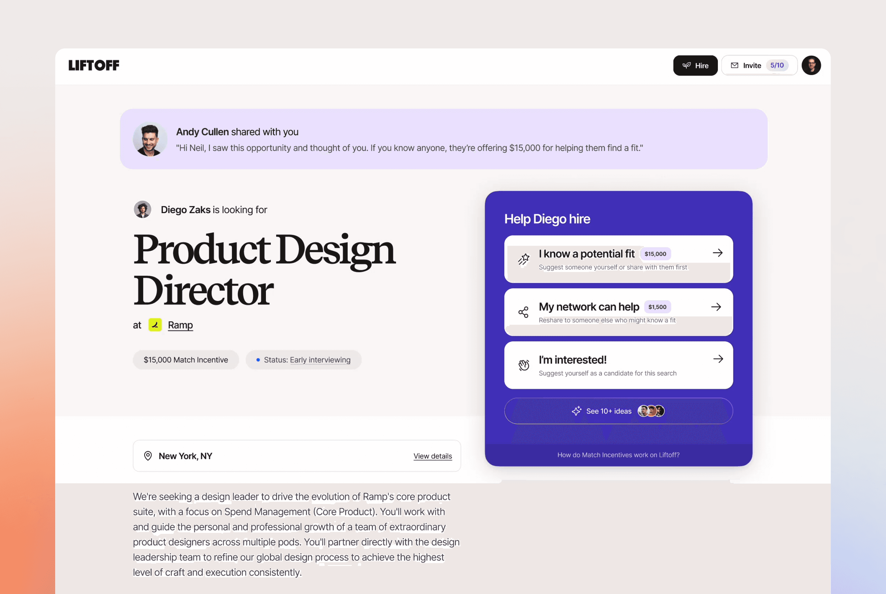Liftoff is a hiring and networking platform that helps great people find each other. I was a Founding Designer working closely with the core team to launch and scale the product.